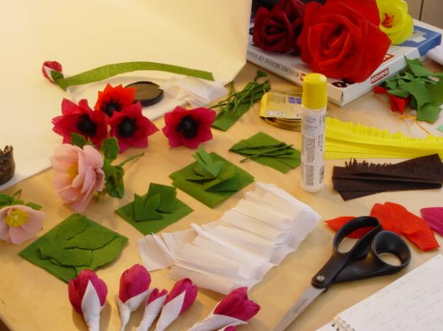 13.) Liste pritrdimo na steblo cveta in naš šipkov cvet je narejen. |