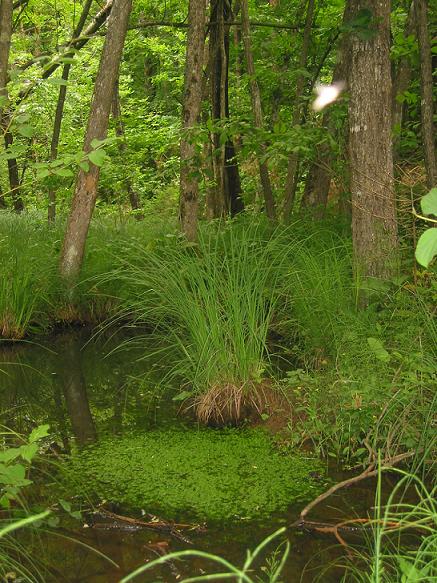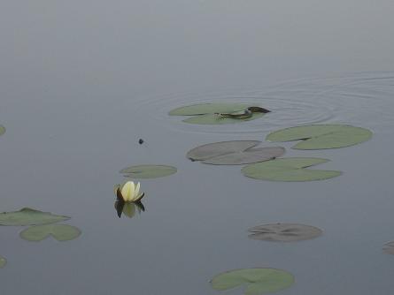 Zaraščanje bregov na kopnem in v vodi spremlja naselitev vodnih živali, ki pridejo same ali pa jih sem zanesejo druge živali. Zaradi gline se na obrežjih ne pojavlja suša, mikroklima je zato manj skrajnostna in vegetacija bujnejša. Na obrežju prevladuje združba ločja in dolgolistne mete, v ilovnatih tleh pa uspevata predvsem trst in rogozi. Spomladi se jezerska gladina spremeni v preprogo cvetočih lokvanjev.
